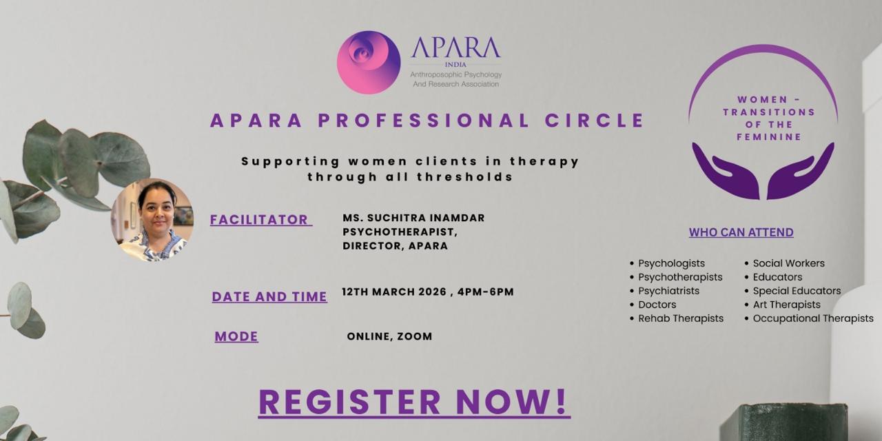 Anthroposophy is a spiritual science uncovering the innate wisdom (sophia) that is inherent as a potential in a human being (anthropos). APARA is only of its kind ‘centre of excellence’ of research and knowledge dissemination of Anthroposophic Psychology (AP) in India. We aim at ‘de-compartmentalising’ psychological healing. The field of AP enables and empowers the practitioners of socially inclined professions to better the understanding of the unison between the body, soul and spirit. Through this understanding emerges the sound perception of the psyche.